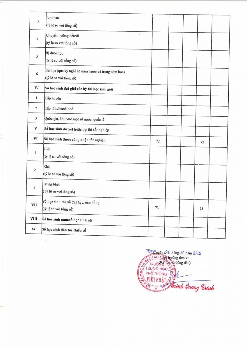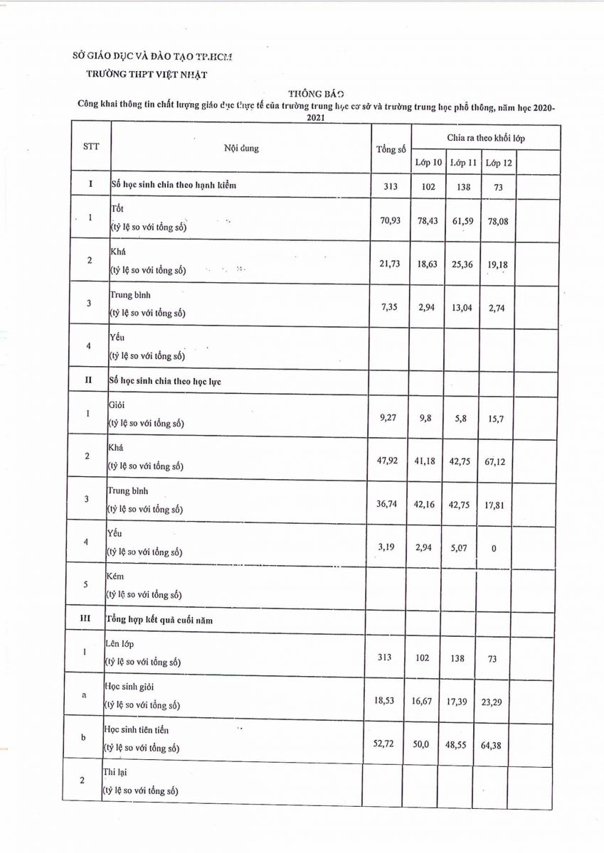 - Công khai thông tin chất lượng giáo dục thực tế trường THPT Việt Nhật cuối năm 2023-2024