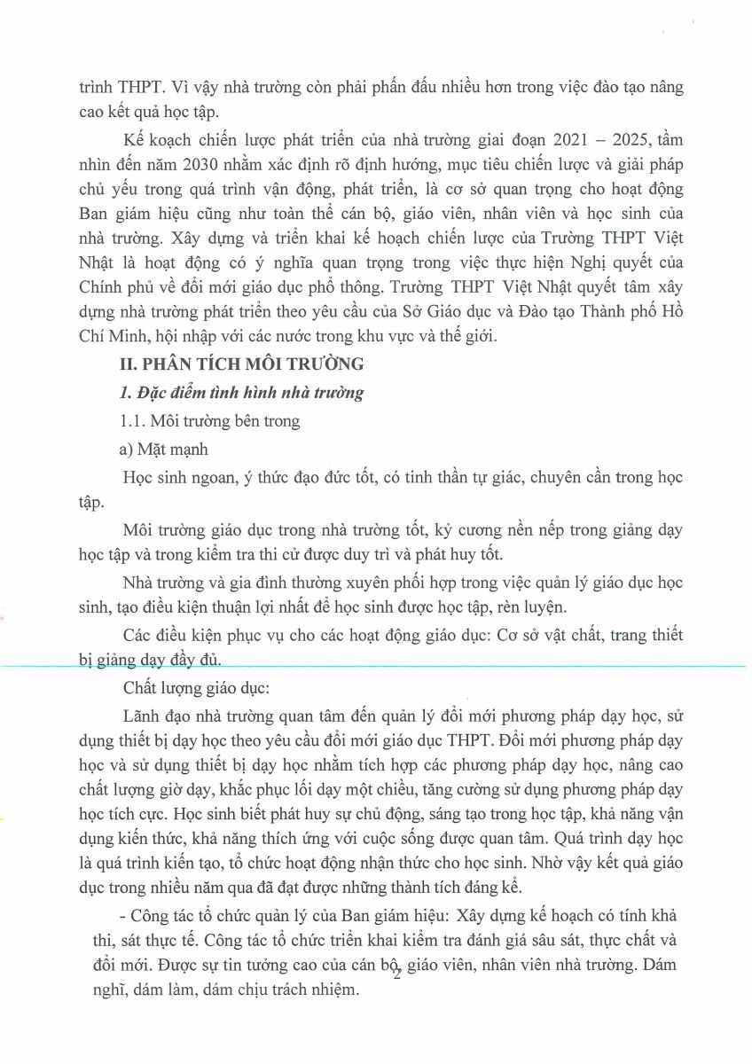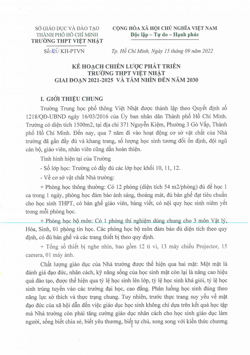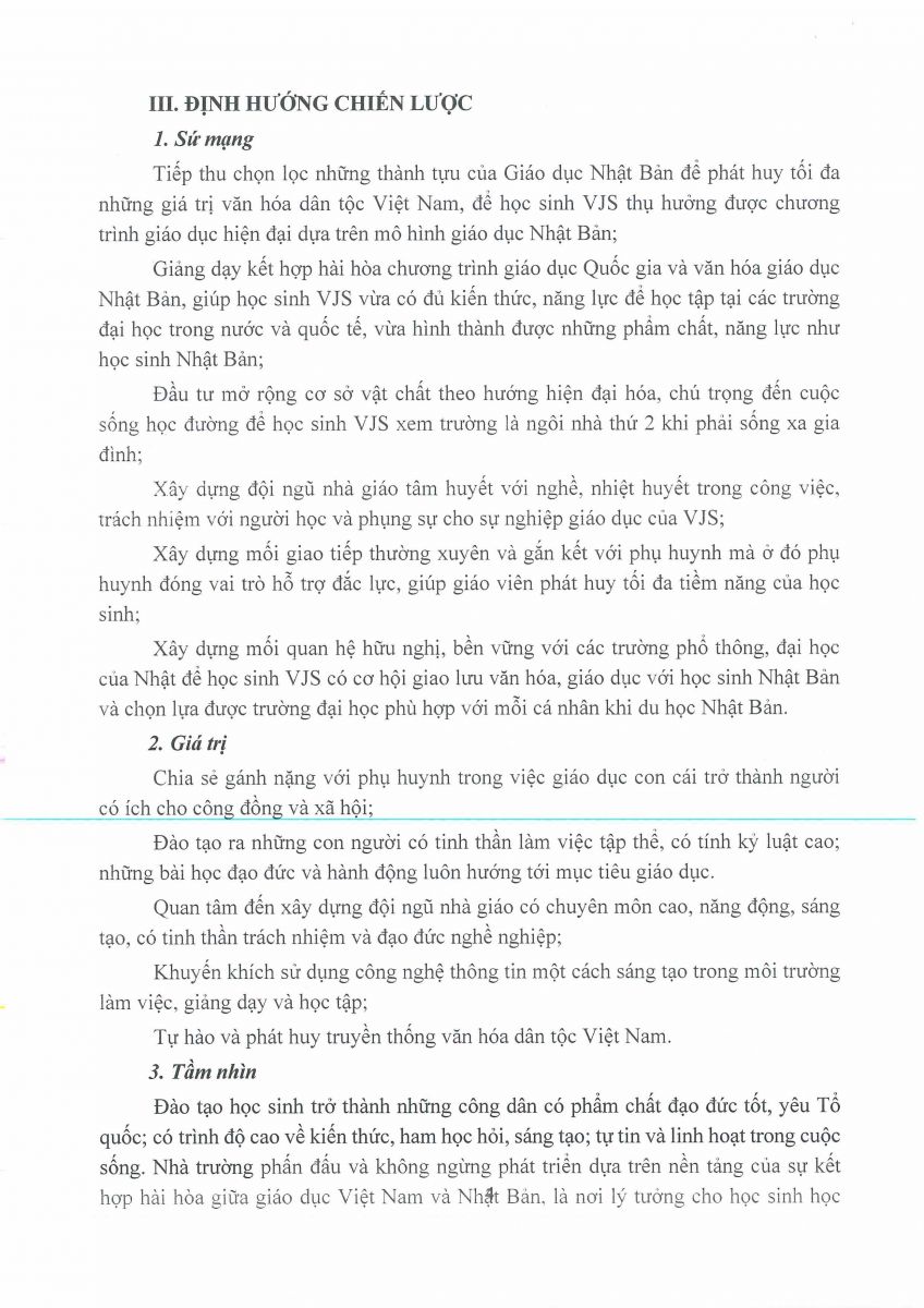 Kế hoạch chiến lược phát triển trường THPT Việt nhật