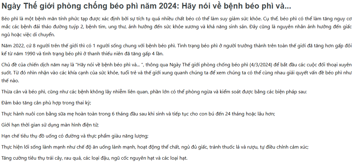Ngày Thế giới phòng chống béo phì năm 2024: Hãy nói về bệnh béo phì và...