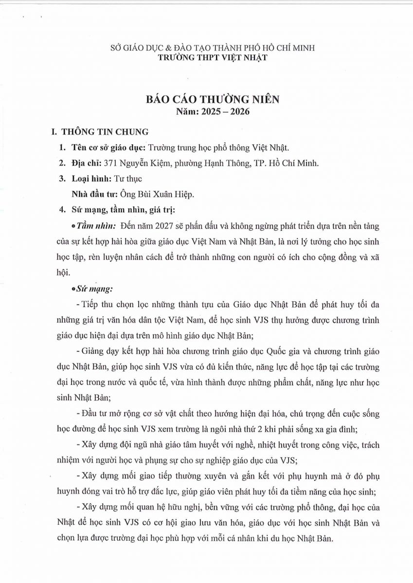 VIỆT NHẬT - BÁO CÁO CÔNG KHAI NH 2025 - 2026